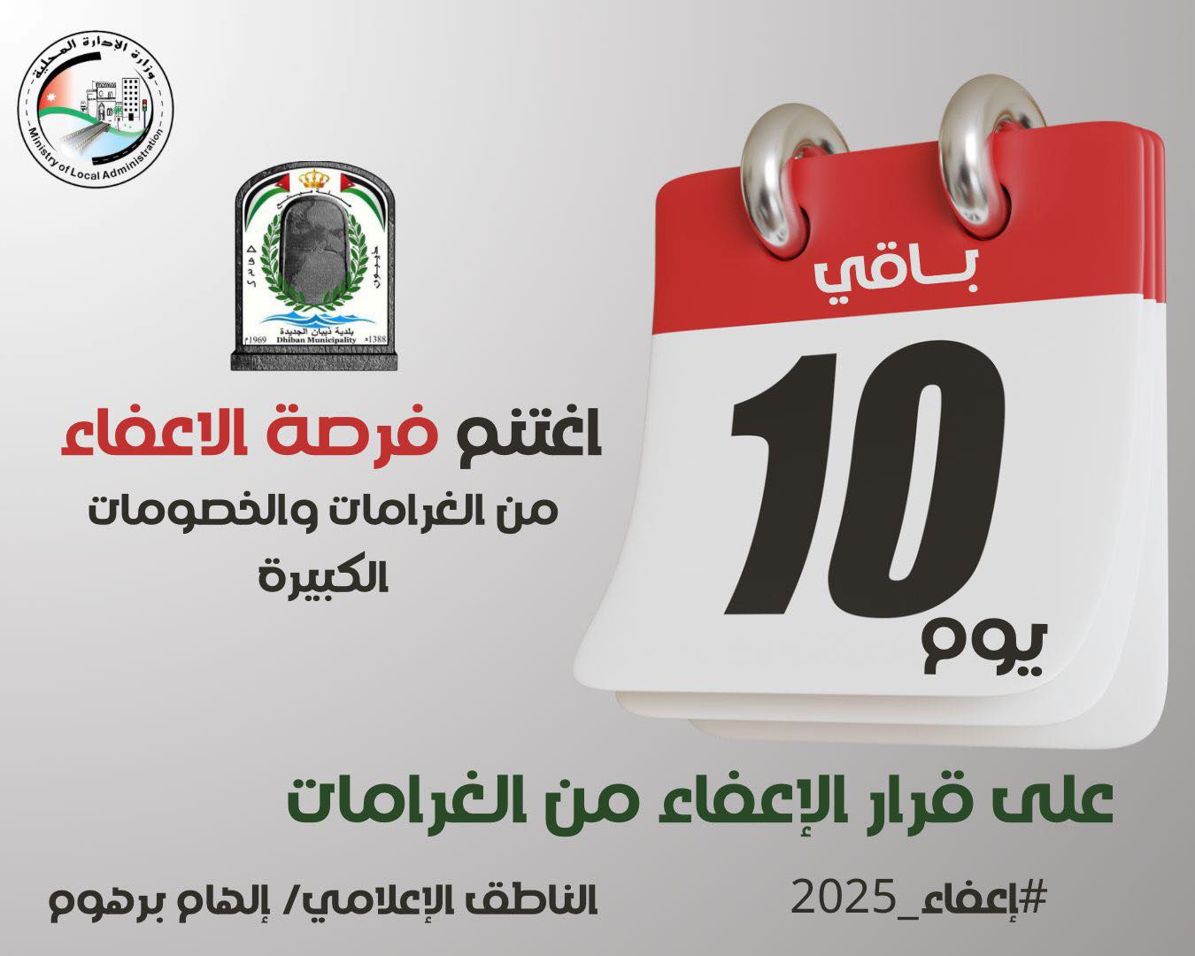 يهيب رئيس لجنة بلدية ذيبان الجديدة المهندس عطاالله الغرير بالاخوة المواطنين في لواء ذيبان اخذ اقصى درجات الحيطة والحذر وفقاً لخريطة مستويات الخطورة من السيول في البلديات